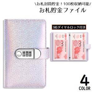 貯金箱 貯金ファイル お札封筒貯金 折らない 3桁ダイヤルロック 鍵付き 紙幣100枚収納可能 現金詰めバインダー 大容量 ラメ キラキラ