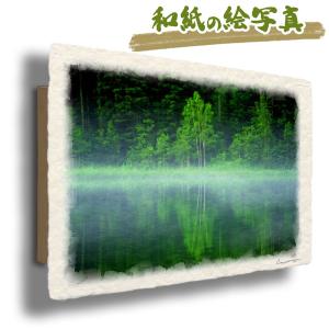 絵画 インテリア 北欧 玄関 風水 絵 風景画 版画 油絵 和紙の絵写真 アートパネル 夏 木 森 「朝霧の湖に映る新緑の白樺」