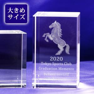 競馬 乗馬 記念品 卒業記念 大会 表彰 名入れ メッセージ刻印 3D馬 クリスタルペーパーウェイト ガラスブロック 高さ100mm 彫刻代込み /NKTR-0263
