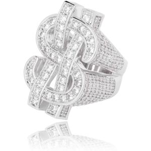 【並行輸入品】JINAO ヒップホップ 米ドル記号リング 18Kゴールドメッキ アイスアウト キュービックジルコニア キラキラリング メンズ (シルバ