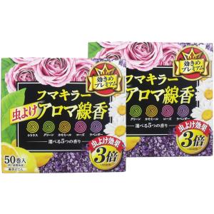 フマキラー 蚊取り線香・虫よけ線香 【まとめ買い】 アロマ線香 虫よけ 50巻 (5色 5つの香り) 線香立て入 × 2個