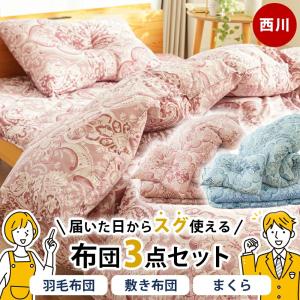 羽毛布団セット シングル 西川 布団3点セット 羽毛 掛け布団 敷き布団 枕 ダウン85% 組布団 来客用 圧縮