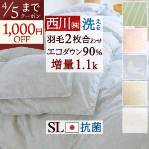 2枚合わせ 羽毛布団 シングル 西川 厳選ダウン90% 合掛け0.8kg 肌掛け0.3kg 日本製 抗菌 洗える コインランドリー対応 2枚合せ 二枚合わせ