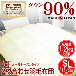 羽毛布団 シングルロング 2枚合わせ オールシーズン ダウン90% 日本製 掛け布団 合い掛け 肌掛け