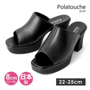 ポラトシェ オフィスサンダル 歩きやすい 厚底 8cmヒール 日本製 美脚 脚長 快適 黒 ブラック Polatouche 3030