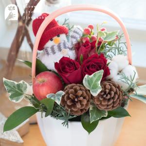 クリスマス 花 ギフト スノーマンアレンジ 雪だるまのピック付き 生花 FKAA