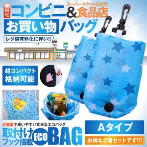 コンビニ 買い物袋 2個セット Aタイプ 青星 エコバッグ人気 肩掛け 折り畳み コンビニ 袋 ポケットサイズ スクエア 2-KARAECO-A 爆買