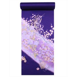 ポリエステル 洗える 付下げ反物 ts-35 紫紺地・牡丹更紗柄【訳有り】