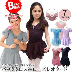 ★(B級品)(訳有り)(返品不可)バレエレオタード 子供用 スカート付 薔薇のお袖