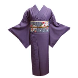 【訳有り 少難あり】 色無地 着物 洗える 単衣 軽装帯 付け帯 2点セット 渋紫色 M L 女性用