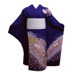 【訳有り 難あり】 振袖 正絹 お買上 お仕立上がり 単品 濃青色地金彩桜小さくら S 成人式 購入 リメイク 生地 古典柄 和柄 桜柄