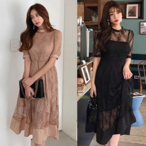 ドレス マオカラーレースドレス「結婚式 二次会 同窓会 謝恩会 お呼ばれドレス」