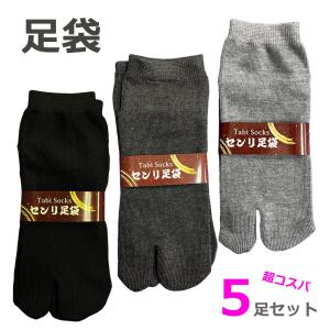 足袋 靴下 ソックス 二股 ソックス 5足セット サイズ25-27 黒 ブラック グレー 送料無料 zakka143