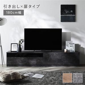 テレビボード 引出し×扉タイプ 約幅180cm ガラス引出し収納90cm+扉収納90cm ストーングレー ワイド 組立品