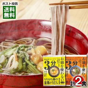 本田商店 お鍋を使わないレンジで仕上がる釜揚げうどん&お鍋を使わないレンジで3分出雲そば 各1人前 お試しセット 生麺 つゆ付き 保存料不使用 簡単料理