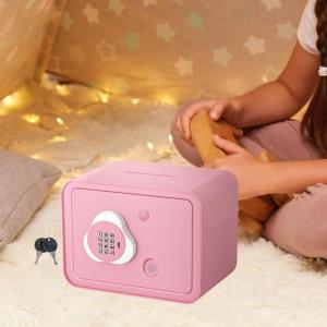 電子マネーバンク パスワードキー付き 指紋認証 丈夫な貯金箱 ピンク