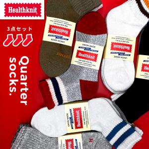 靴下 メンズ ヘルスニット ソックス 3Pセット ラインソックス Healthknit 3足 セット 25-27cm スポーツソックス 靴下3足セット 厚手 メンズ靴下 クォーター丈