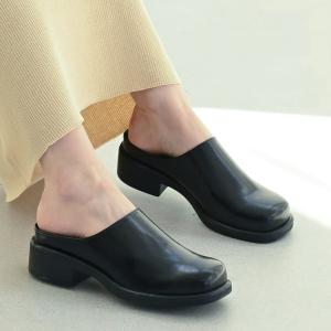 スクエアトゥ スライド ローファー サボ クロッグシューズ レディース 履きやすい 歩きやすい アミアミ