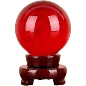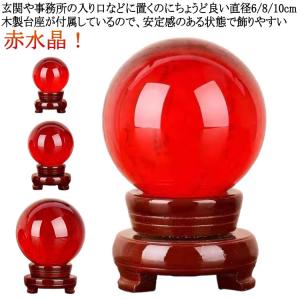 水晶玉 風水 置物 台座付き 浄化 玄関 リビング ギフト (レッド, 直径8cm)
