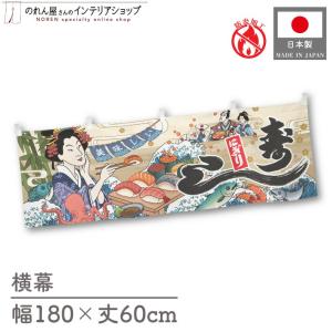 横幕 横長 防炎 寿し すし 寿司 鮨 180cm幅 60cm丈 Ukiyo-e Style 浮世絵 歌舞伎 屋台幕 暖簾 業務用 店舗用 飲食店(受注生産 48707)