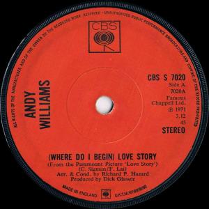 英7” Andy Williams (Where Do I Begin) Love Story CBSS7020 CBS /00080