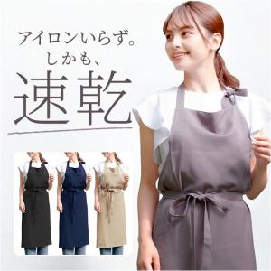 エプロン おしゃれ ロング丈 通販 ロングエプロン 前結び レディース 速乾 シワになりにくい シンプル 無地 家事 炊事 カフェ 飲食店 ユニフォーム エプロン