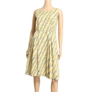 美品/ブルーベル Bluebell フレアワンピース 表記 40号 11号 相当 黄色 イエロー 斜めストライプ柄 ひざ丈 お出掛け 春 夏 レディース