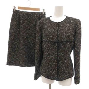 ブルーベル Bluebell ジャケット スカート セットアップ 11AR ブラック ツイード ミックスカラー ノーカラー リボン /UO ■GY61