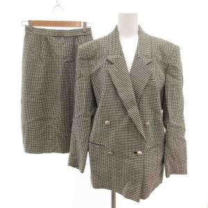 ブルーベル BLUEBELL テーラードジャケット ダブル スカート ハウンドトゥース 千鳥柄 シルク混 9 白 ホワイト 黒 ブラック /JS