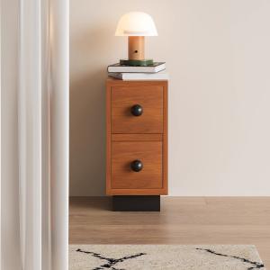 CAGUUU 木製ベッドサイドテーブル 天然木製 2段引き出し付き ベッドサイドテーブル ナイトテーブル 寝室用モダン収納 サイドキャビネット
