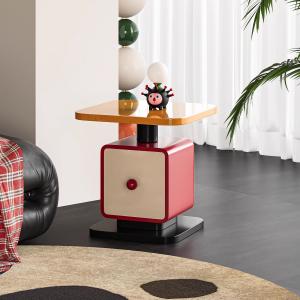 CAGUUU レトロポップサイドキャビネット ナイトテーブル 小物収納付き 多機能サイドテーブル おしゃれなベッドサイド家具