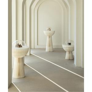 CAGUUU ロマンチック サイドテーブル L49.5*W49.5*H70cm 折りたたみ式 花束のようなデザイン クラフト紙素材 アクリルカバーパネル付き
