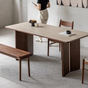 CAGUUU ダイニングテーブル トラバーチンダイニングテーブル (幅1.8m) ブラックウォールナットダイニングテーブル 異素材モダンテーブル