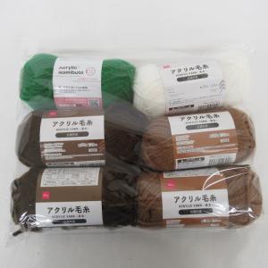 DAISO ダイソー 毛糸 アクリルヤーン 6玉セット チョコブラウン ライトブラウン グリーン ホワイト 並太