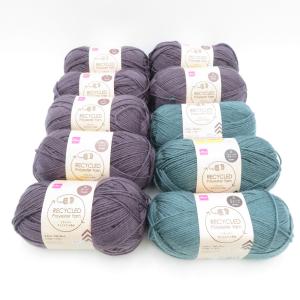 DAISO ダイソー 毛糸 リサイクルポリエステル毛糸 10玉 ティールグリーン モーブ 1玉70g 約165m 未使用品
