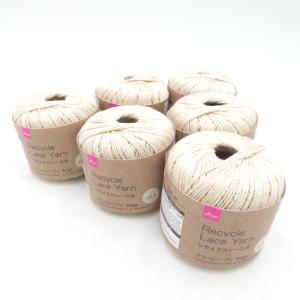 DAISO ダイソー 毛糸 6玉セット リサイクルレース糸 1玉20g 約80m 太 春夏糸 クリームベージュ リサイクルコットン50%使用