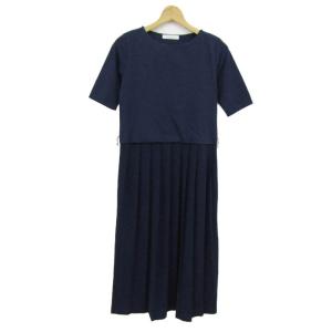 ドゥクラッセ ロングワンピース トップス 半袖 プリーツ レディース Sサイズ ネイビー DoCLASSE