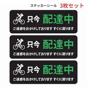 UBER eats シール ステッカー 各種配達 ただいま 配達中 自転車マーク付き 黒 長方形タイプ 3枚セット 自転車 バイク 表示 掲示 トラブル回避 塩ビ素材