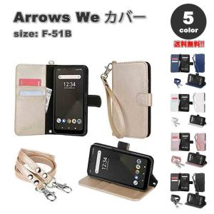 即納 Arrows We F-51B ケース 手帳型 カード収納 スタンド機能 ストラップ付き PUレザー 全5色 ワイヤレス充電 アローズ 富士通 スマホケース カバー 送料無料