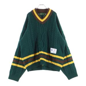 GIM ジム Knitted Hockey Jersey Vネック ウール ケーブルニットセーター グリーン 23505130