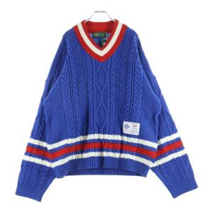 GIM ジム Knitted Hockey Jersey Vネック ウール ケーブルニットセーター ネイビー 23505130