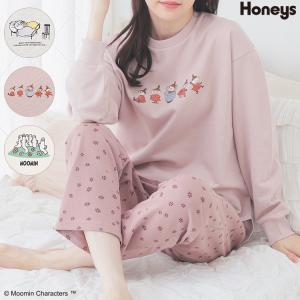 ルームウェア 部屋着 上下セット ムーミン 裏毛 綿 花柄 プリント レディー Honeys ハニーズ ムーミン/ルームウェア(上下セット)