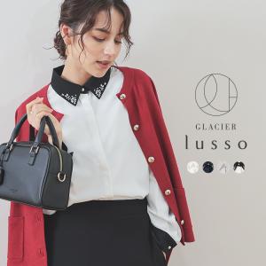 トップス シャツ ブラウス 長袖 ビジュー付き フロントボタン 比翼仕立て 無地 配色 カジュアル レディース Honeys ハニーズ 衿ビジュー付シャツ