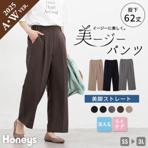 ボトムス パンツ 美ージーストレートパンツ 大きいサイズ オフィス きれいめ ストレートパンツ レディース Honeys ハニーズ 美ージーストレート(股下62cm)