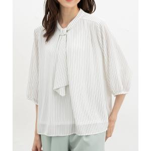 ブラウス シャツ 6分袖アクセ付ボウタイブラウス レディース