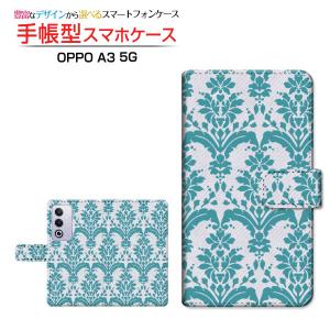 スマホケース OPPO A3 5G クリアケース付 楽天モバイル Y!mobile iijmio 手帳型 ケース カメラ穴対応 ダマスク type1 グリーン