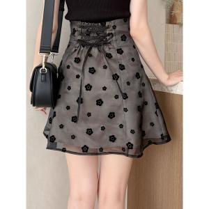 スカート 「MARY QUANTコラボ」デイジーフロッキープリントバックレースアップミニスカパン