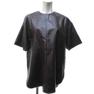 ミラオーウェン Mila Owen 美品 20SS シャツカーブフェイクレザーTシャツ カットソー 半袖 茶 ブラウン 0 約XS
