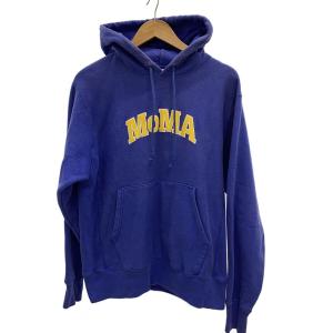 Champion◆×moma/reverse weave/青単タグ/使用感パーカー/M/コットン/BLU/無地/cs