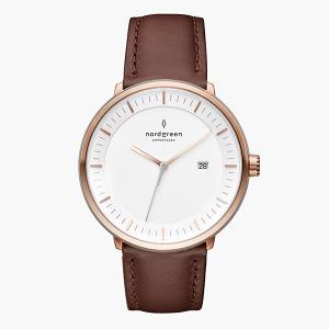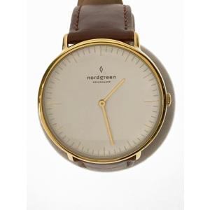 nordgreen◆クォーツ腕時計/アナログ/レザー/WHT/BRW/SS//